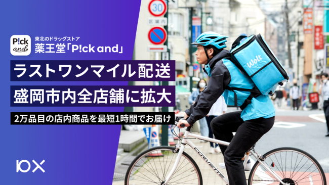 株式会社10X(本社:東京都中央区、代表取締役CEO 矢本 真丈、以下10X)は、同社が小売ECプラットフォーム「Stailer(ステイラー)」を通じて提供する薬王堂「P!ck and」アプリにて「Wolt Drive」を活用したラストワンマイル配送の対象エリアを、2022年11月29日より盛岡市内の全店舗に拡大します。