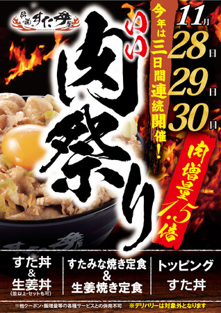 大盛り丼界のパイオニアが贈る史上最高で最強の肉祭り!「伝説のすた丼屋」11月は“いい肉祭り”で『肉の日』を史上初の3日間連続開催!