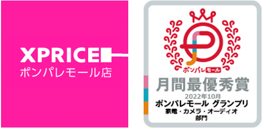 日頃より多くのお客様にご愛顧をいただき、この度XPRICEポンパレモール店では2022年10月度の「ポンパレモールグランプリ」におきまして家電・カメラ・オーディオ部門月間最優秀賞を受賞いたしました。