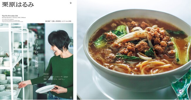 2022年3月に講談社より創刊した料理家 栗原はるみさんのパーソナルマガジンです。料理やレシピをメインに、栗原さんのライフスタイルも紹介します。ファッション、美容、器、インテリア、本、音楽、旅……栗原さんのプライベートな素顔と、暮らしの知恵が詰まった一冊です。第3号のメイン特集は「私のうつわ、食器棚。」。2023年カレンダーとおせち料理のレシピ集の2つの付録付きです。