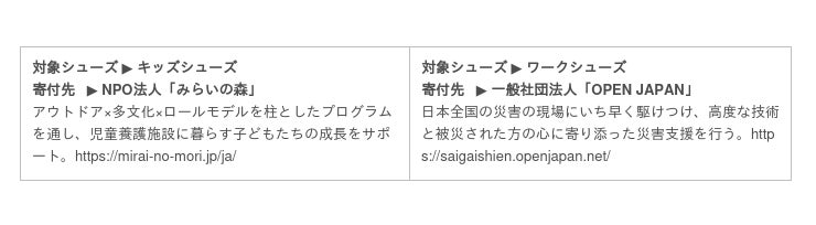 ●対象シューズと寄付先: