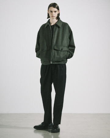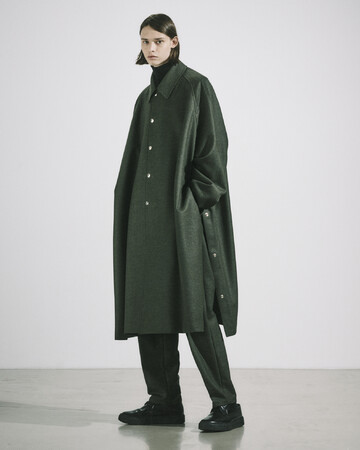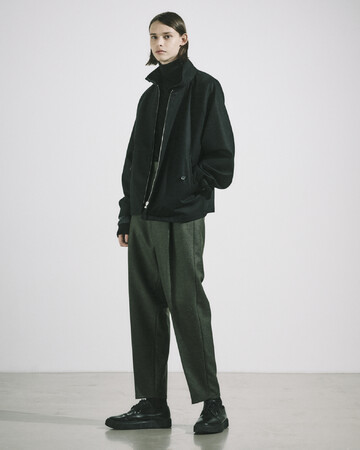 “バルカラーポンチョ“、”フライトジャケット“、”バックベルトトラウザース“をベースに生地別注。