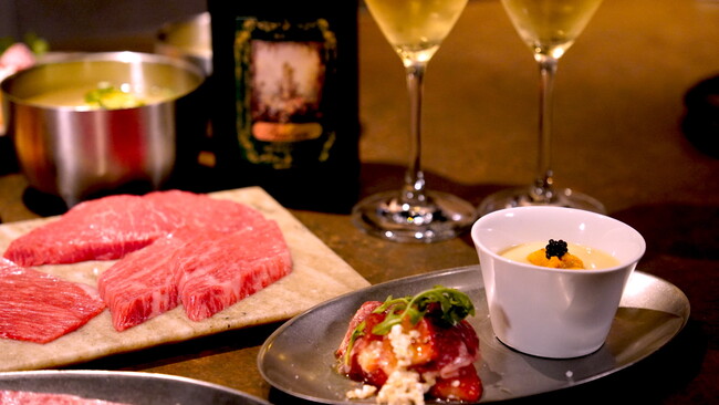 12/23~25限定で、8種の黒毛和牛に乾杯スパークリンワイン1杯を含む、全18品の贅沢なクリスマスコースをご用意いたしました。
