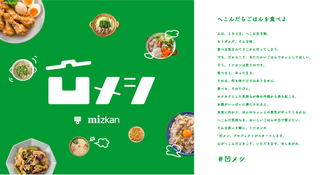 株式会社Mizkan (本社:愛知県半田市、代表取締役社長兼 CEO :吉永 智征、以下:ミツカン)は、ウェルビーイングの実現に向けて、へこんだ気持ちをごはんの力であたためる「凹 (へこ)メシ」 プロジェクトを開始いたします。ミツカンは「おいしさと健康の一致」を目指し、身体のみならず「心の健康」の実現を支援するために、プロジェクトを推進する組織として「凹んでない課」を新設。ごはんの力でみなさまを元気づける取り組みを、社内外問わず中長期的に展開してまいります。