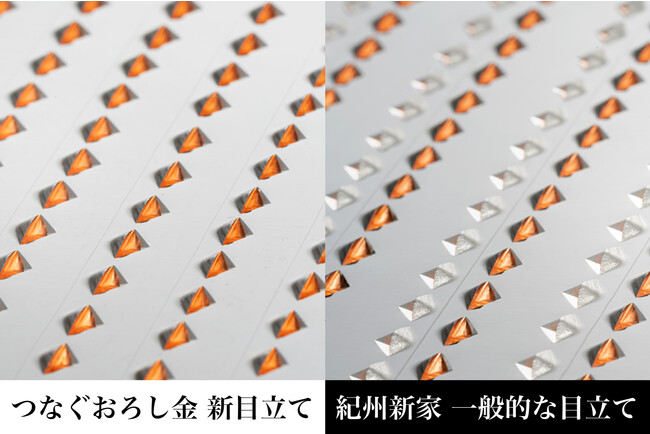 今回のつなぐおろし金プロジェクトのために開発した家庭用おろし金は、従来の紀州新家が作る家庭用のおろし金と目立ての形状が異なります。
