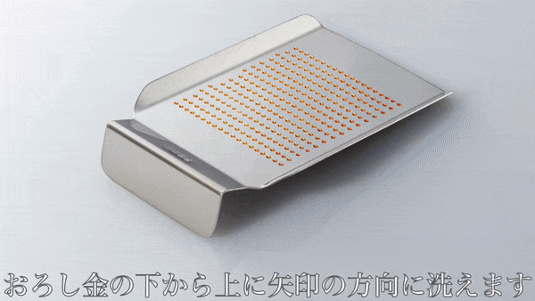 さらに片方にしか目がついていない事で、おろし金の目に沿って(下から上に一方向に)スポンジで洗うことが出来ます。もともと目立てが大きく、一目一目をまっすぐ打って作っていることで、繊維の引っかかりが少なく、サッと水で流すだけできれいにお手入れが出来ていましたが、汚れが目立つときなどにより簡単綺麗にご使用頂けるようになりました。