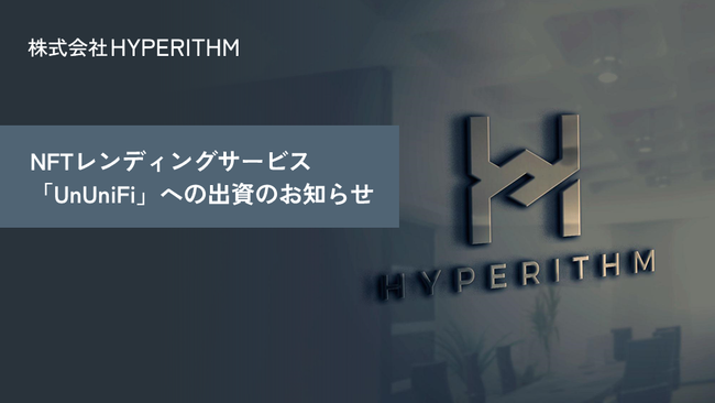 株式会社HYPERITHM(本社:東京都千代田区、代表取締役:ロイド・リー、以下「当社」)は、NFTレンディングサービスを提供する「UnUniFi」に出資したことをお知らせします。