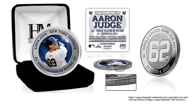 商品名:Aaron Judge AL Single Season Home Run Record 62 シルバーコインレジェンドフォトミント