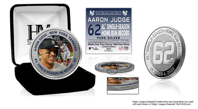 商品名:Aaron Judge AL Single Season Home Run Record 62 シルバーコインフォトミント