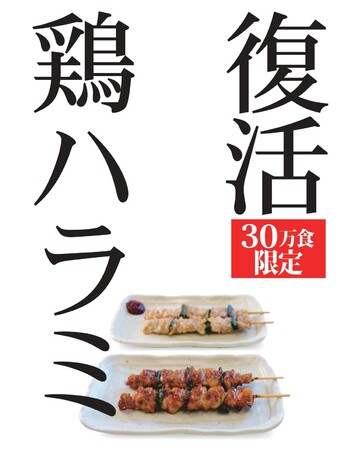 株式会社鳥貴族(本社:大阪市浪速区 代表取締役社長:江野澤暢男)が運営する全品319円均一(税込350円)の焼鳥屋「鳥貴族」は、人気の高かった希少部位の「鶏ハラミ」を、2022年12月8日より30万食限定で復活することをお知らせいたします。