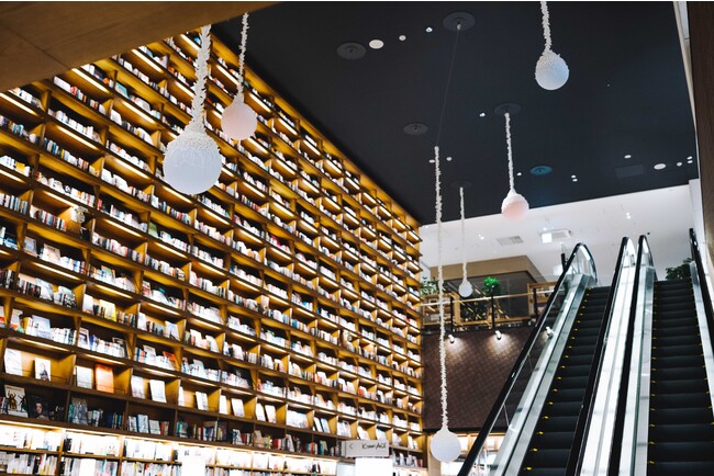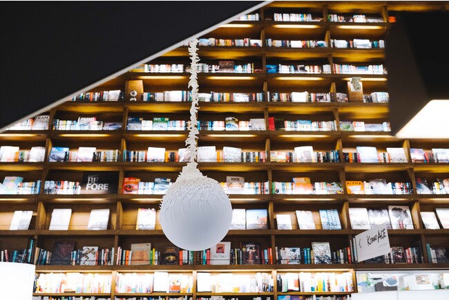 【広島 蔦屋書店】店舗を象徴する巨大書棚のある空間に現代アート作品を展示