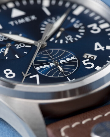 青空を飛んだパンナム航空の機体に用いられたコーポレートカラーのブルーや、同社のロゴマークを随所に配した時計にはパイロットウォッチのディテールを取り入れ、3針のデイデイトモデルとクロノグラフの2つのモデルがラインナップ。コラボレーションの証であるオリジナルパッケージの他、ピンバッジが付属します。