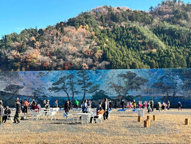 「海岸線の美術館」の開館を記念して、2022年11月26日(土)に壁画の前で石巻の食・音楽・クラフトが楽しめる『雄勝壁画まつり』を開催しました。当日は、東北ユースオーケストラによる「壁際演奏会」や奇妙礼太郎さんによる「海岸線のライブ」をはじめとした数々のプログラムが上演され、約1000人の方が訪れ、多くの人で賑わいました。