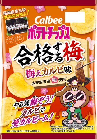 カルビーと福岡農業高校が授業を通じて開発した受験生応援品!今年で共創10年目!太宰府市産100%の梅ペーストを使った『ポテトチップス合格(ごうかく)する梅(ばい) 梅えカルビ味』