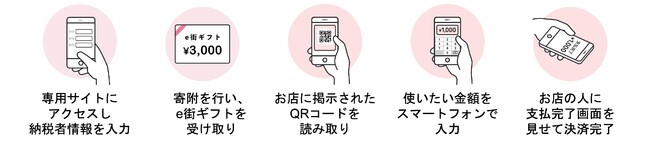 「旅先納税(R)」とはスマートフォンから即座にふるさと納税(寄附)ができ、ふるさと納税の返礼品として地域で利用可能な電子商品券を即座に受け取り、“市町村内のお店で”使用できる仕組みです。また、「e街プラットフォーム(R)」の基本ソリューションである「e街ギフト(R)」(※3)とは、地域で利用可能な電子商品券の発行、流通を可能とするシステムであり、「旅先納税(R)」システムとあわせて仙北市に導入いただいております。仙北市ではこれまで、民間のふるさと納税ポータルサイト等を介した、発送された返礼品を自宅等で受け取るタイプのふるさと納税を実施されておりました。この度の「e街ギフト(R)」と「旅先納税(R)」システムの導入により、旅前・旅先で仙北市に寄附し旅行中に返礼品の利用が可能な「旅先納税(R)」が新たなふるさと納税の手段として加わりました。「旅先納税(R)」の寄附者は電子商品券「せんぼくe街ギフト」(返礼品)を寄附サイトのマイページ内の「お礼の品」のページからすぐに受け取り、即時利用することが可能となります。