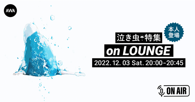 AWA株式会社(本社:東京都港区、代表取締役CEO:冨樫晃己)が運営する、サブスクリプション型(定額制)音楽ストリーミングサービス「AWA(アワ)」は、2022年12月3日(土) 20:00~20:45の45分間に渡り、無料で誰でも参加できるオンライン空間「ラウンジ」で、特徴的なハスキーボイスに乗せて自在に紡がれるメロディと、巧みな言葉選びの歌詞で唯一無二な表現の楽曲を生み出すソロアーティスト「泣き虫」が、音声とチャットで参加するAWAラウンジを開催いたします。