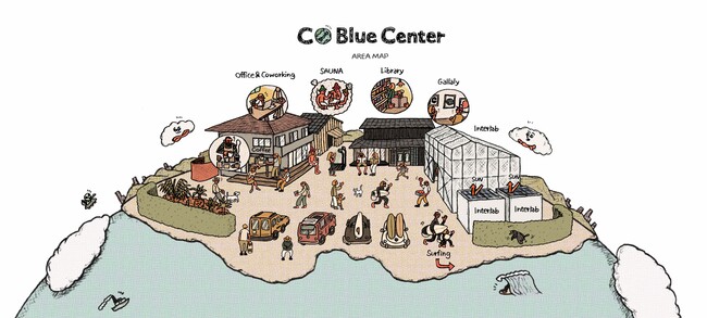 CO Blue Center(コー フ゛ルー センター・代表 東山迪也)は、地域・技術・海の3循環 [Blue Cycle] を実現すべく、センター内に約8種類の事業・サービスを展開予定。 気候変動・海洋プラ問題・地域課題などに適応するソーシャルビジネスを立ち上げる企業を多く集め、環境課題解決に取り組む。
