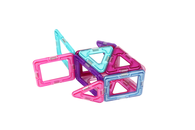 磁石(マグ)で形づくる(フォーム)という名の通り、磁石でつながる数学ブロックです。磁石が瞬時にカチッとつながるスピード感が子どもから大人を魅了します。