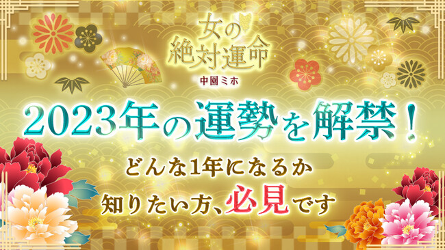 株式会社CAM(本社:東京都渋谷区、代表取締役社長:須田瞬海、以下CAM)は、運営する「中園ミホ 解禁!女の絶対運命(https://nakazono-miho.marouge.jp/)」にて2023年の運勢占いを公開いたしました。