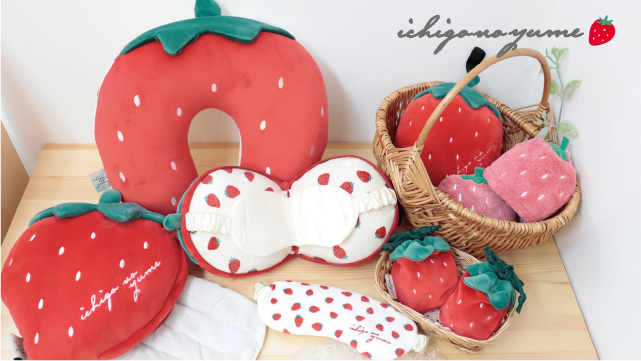 真っ赤なころんとしたフォルムが可愛すぎ(ハート)お家でも外出先でも使えるイチゴの安眠グッズでカラダもココロもあま~く癒されちゃう♪