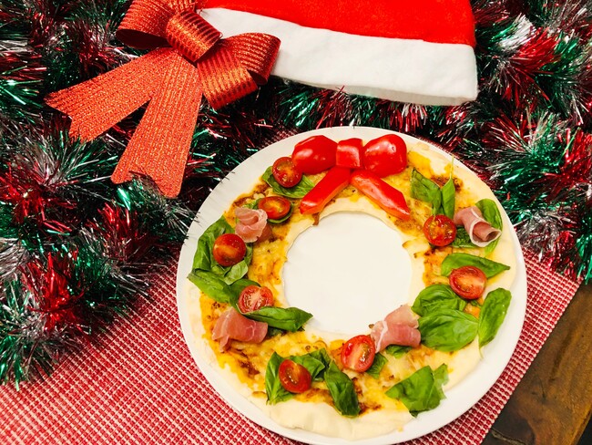 ■ピザ窯で焼き上げ!アツアツのクリスマススペシャルリースピザを作ろう!