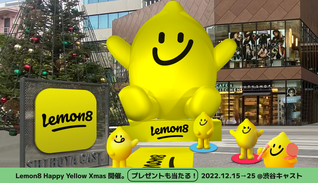 毎日に、ハジける発見が出来るアプリ「 Lemon8(レモンエイト)」は、2022年12月15日(木)~12月25日(日)までの間、渋谷キャストでクリスマスイベント「Lemon8 Happy Yellow Xmas」を開催します!