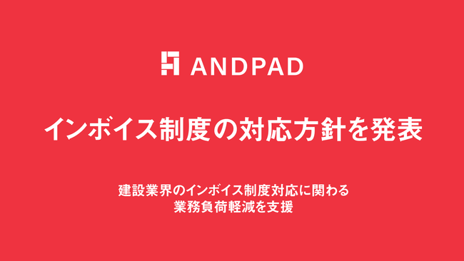 クラウド型建設プロジェクト管理サービス「ANDPAD」を運営する株式会社アンドパッド(本社:東京都千代田区、代表取締役:稲田武夫、以下アンドパッド)は、2023年10月1日に開始される適格請求書等保存方式(以下「インボイス制度」)への対応方針を発表、インボイス制度対応に掛かる建設業界の業務負荷軽減を支援いたします。