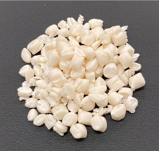 パナソニックは、2015年から石油由来の樹脂量を減らす研究開発活動を開始、2019年に天然由来成分であるセルロースファイバーを55%濃度で(※1)、2021年には70%濃度(バイオマス度70%)で樹脂に混ぜ込む複合加工技術を開発(※2)、2022年3月には植物由来の樹脂を使用したバイオマス度90%以上の成形材料を開発しました(※3)。さらに成形材料の完全生分解化に向けて、生分解性樹脂にセルロースファイバーを混ぜ込む取り組みを進めました。既存の生分解性樹脂は、ポリプロピレン等の汎用樹脂と比べると強度や耐久性が低く、用途が限られています。さらにセルロースファイバーと混ぜ込むと流動性が低く、複雑な形状の成形が難しいため展開先が限られていました。そのため、植物由来のポリ乳酸を含む複数の生分解性樹脂をブレンドし、適正な添加剤を加えることにより、1 mmの薄肉成形も可能な生分解性と高弾性率を両立する成形材料を開発しました。また、従来のkinari(セルロースファイバー55%)(※4)同様、着色自由性が高い白色の樹脂ペレット化に成功、素材そのものを褐色化させることも可能で、木質感などの高いデザイン性も実現できます。