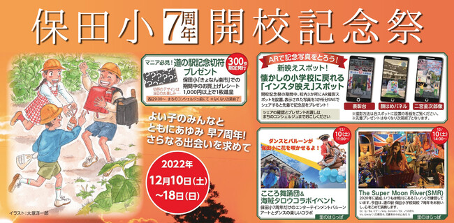 コロナ禍の間は、集客イベントを自粛しておりましたが「三密対策」を重視し、新たにAR※を使用したインスタ映えスポットを設置するなど、お客様が密にならずに楽しめるイベントを多数ご用意し、保田小開校記念祭を開催します。