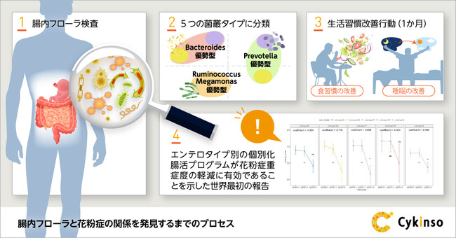 株式会社サイキンソー(本社:東京都渋谷区、代表取締役:沢井 悠、以下サイキンソー)は、SOMPOヘルスサポート株式会社(本社:東京都千代田区、代表取締役社長:平塚 徹、以下SOMPOヘルスサポート)とともに、腸内細菌叢の菌構成別の生活習慣介入による花粉症重症度に対する有効性を検証するための共同研究を実施しました。