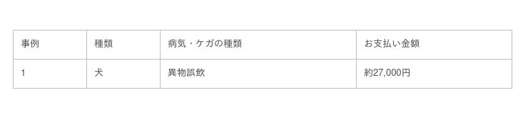 保険金のお支払いは、上記のように高額なものに限りません。次に、平均的なお支払い事例としてペットの異物誤飲の診療をご紹介します。