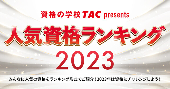 資格取得に向けた教育サービスを展開しているTAC株式会社(東京都千代田区、代表取締役社長:多田 敏男)では、『2023年 人気資格ランキング』を発表いたしました。人気資格ランキングのほか、学生に人気の資格ランキングもご紹介しています。
