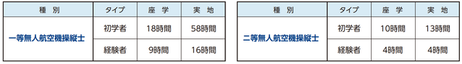 ●一等無人航空機操縦士、二等無人航空機操縦士免許取得に必要な履修時間数