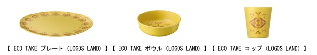 直径約25cmと使い勝手の良いサイズ感で、1枚あれば万能に活躍する「ECO TAKEプレート(LOGOS LAND)」をはじめ、約50mlのディナーボウル「ECO TAKE ボウル(LOGOS LAND)」、約300mlのドリンクコップ「ECO TAKE(LOGOS LAND)」の3種類を展開します。3点を一緒に使えば統一感のあるテーブルコーディネートを楽しむことができます。