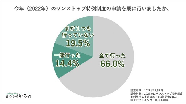 しかしながら「ワンストップ特例制度」の申請がまだ済んでいない人も多いようです。「ワンストップ特例制度」で税金控除手続きを行う予定の人に調査時点での申請状況を伺ったところ「一部行った」が14.4%、「まだ1つも行っていない」が19.5%となり、それらを合計した3人に1人(33.9%)がまだ申請を済ませていないものがあるという結果に。申請期限は1月10日(郵送の場合は必着)ですが、申請期限ギリギリの“駆け込み申請”も少なくなさそうです。