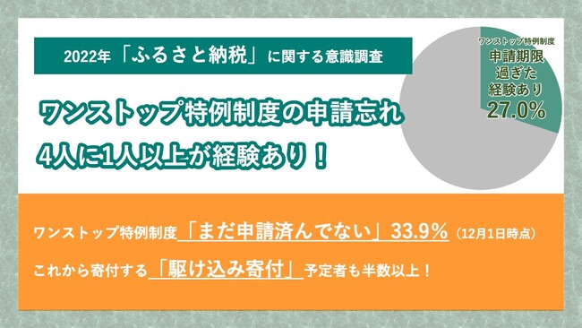 4人に1人は「ワンストップ特例制度の申請を忘れた」経験アリ! 今年分の申請が済んでいない人は12月1日時点で33.9%… 「これから寄付する」…半数以上が12月中の“駆け込み寄付”を予定