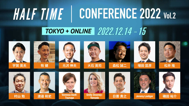 スポーツビジネス領域でPR・ブランディング及び採用事業を展開するHALF TIME株式会社では、スポーツビジネスカンファレンス「HALF TIMEカンファレンス」の2022年第二弾を、12月14日(水)と15日(木)に東京会場(コングレスクエア日本橋)とオンラインのハイブリッド形式で開催します。