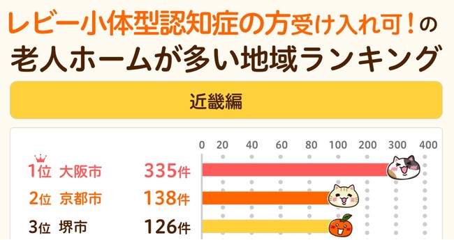 掲載施設数No.1(※)の⽼人ホーム検索サイト「みんなの介護」を運営する株式会社クーリエ(本社:東京都渋谷区、代表取締役 安田 大作)では、サイト運営で得た知見を基に介護事業の課題や社会的事象を調査・研究しています。今回は「レビー小体型認知症の方を受け入れ可能な老人ホーム(近畿編)」の情報に関するレポートです。