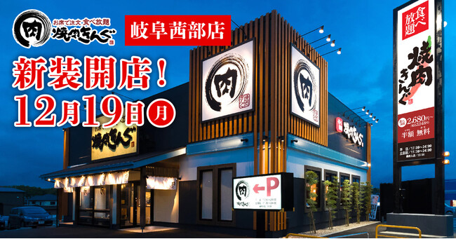 株式会社物語コーポレーション(本社:愛知県豊橋市/代表取締役社長:加藤 央之)は、2022年12月19日(月)に、『焼肉きんぐ 岐阜茜部店』(岐阜県岐阜市)を新装開店いたします。
