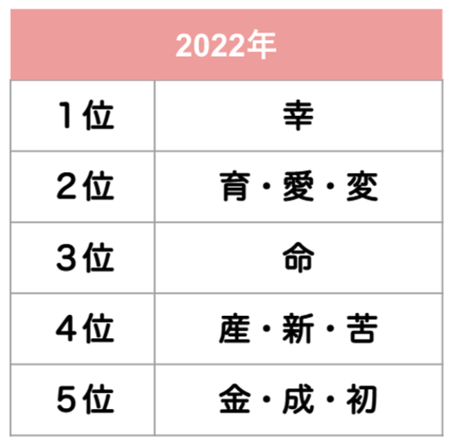また、「幸」の漢字は、2018年・2019年・2020年に実施した当社調査にて毎回1位だったところ前回調査(2021年)では3位だったことから、このたびの結果から2年ぶりの1位となりました。