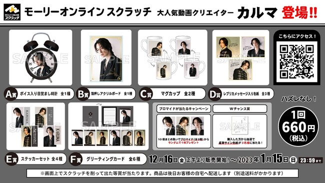 大人気動画クリエイター『カルマ』完全撮りおろしカットのプライズが初登場! 『カルマ』の限定プライズやカプセルトイ、オンラインスクラッチが12月16日(金)より展開開始