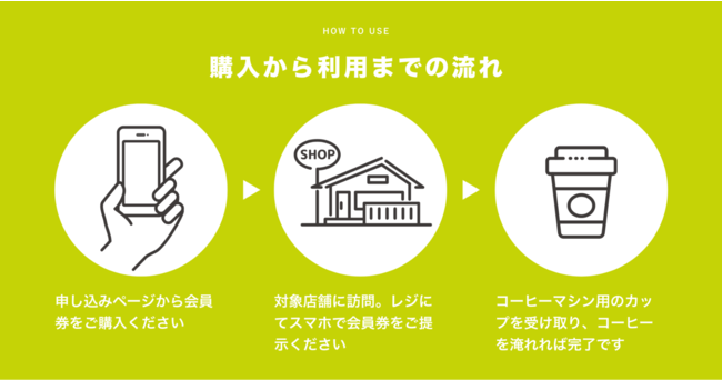対象店舗に来店し、レジにてスマートフォンの会員券画面を提示してください。コーヒーマシン用のカップを受け取り、コーヒーマシンでコーヒーを淹れれば受け取り完了です。