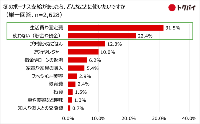 冬のボーナスがあったら使いたいことは「生活費や固定費」「使わない(貯金や預金)」