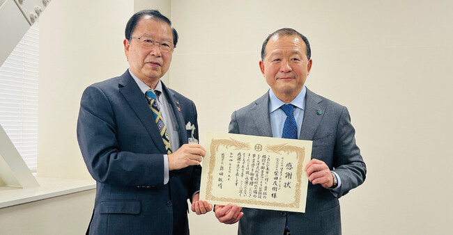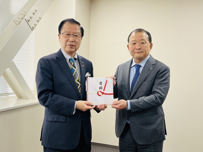 寄附に伴い、2022年12月9日(金)に城陽市役所にて寄附受納式を執り行い、奥田敏晴市長、弊社代表取締役社長柴田茂樹が出席いたしました。また、奥田市長より、感謝状を拝受いたしました。
