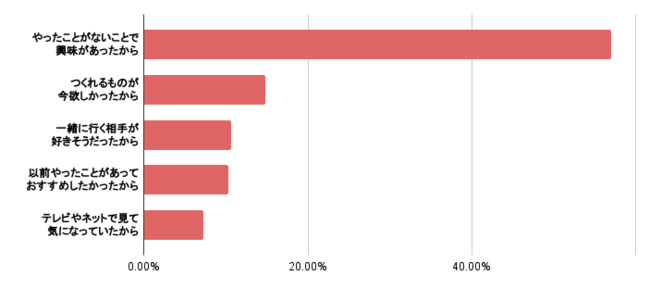 ものづくりの体験選びに重視するポイントも、「やったことがないことで興味があった」という声が約57.0%で最多となりました。