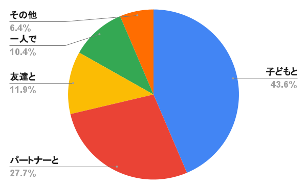 昨年のランキングでは4位でしたが、今回は順位を一つ上げ、一緒にやりたい人別でみても「子どもと」「彼氏・彼女・パートナーと」「友達と」の全ての項目で3位となっています。