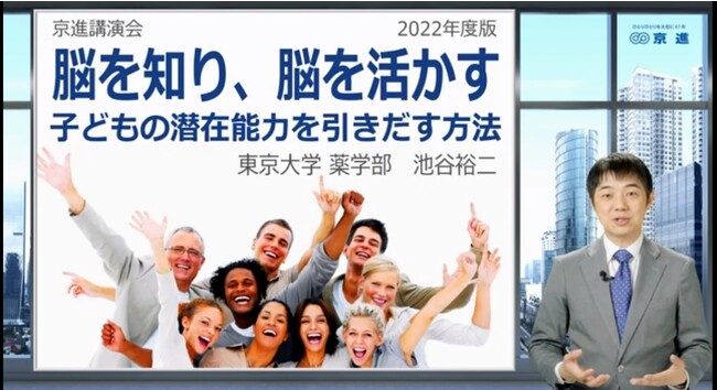 国内外に学習塾を展開する京進は、2022年11月27日(日)に、東京大学薬学部 池谷裕二教授による教育講演会「脳を知り、脳を活かす~子どもの潜在能力を引き出す方法~」を、オンラインで開催しました。対象は小中学生のお子さまをお持ちの保護者の方で、申込み開始と同時に多くの問合せがあり、締切までに1,400件を超える申込みがありました。