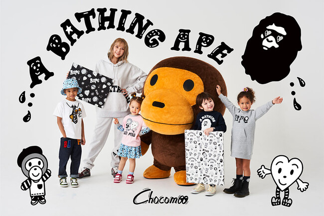 充実の 15 周年イヤーを終え、16 周年を迎えた BAPE KIDS(R)︎がニューコレクションを発表。 日本国内だけにとどまらず、世界的に注目を集めているイラストレーター、「Chocomoo(チ ョコムー)」をパートナーに迎え、キュートなコラボレーションが実現。 「Chocomoo」の独創的でポップなイラストが、「BAPE KIDS(R)︎」の世界観に合わせてグラ フィカルに落とし込まれた、個性溢れるコレクションとなっています。