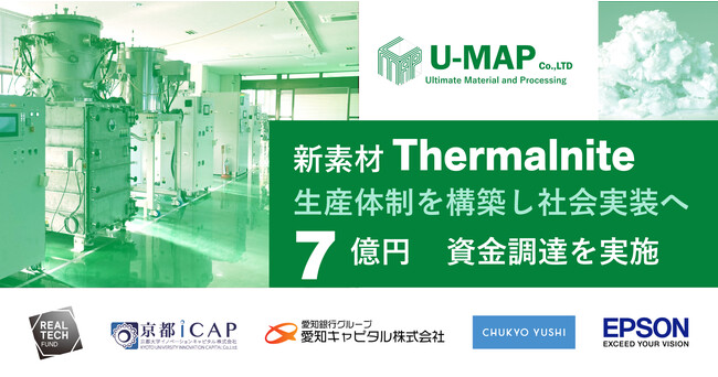 株式会社U-MAP(本社:愛知県名古屋市、代表取締役社長兼CEO:西谷健治、以下U-MAP)は、リアルテックファンド、京都大学イノベーションキャピタル、中京油脂、愛知キャピタル、EP-GB投資事業有限責任組合(セイコーエプソン株式会社とグローバル・ブレイン株式会社が設立)を引受先とした第三者割当増資、および中小企業庁Go-Tech事業(出資獲得枠)を始めとする助成金の採択により、約7億円の資金調達を実施しました。