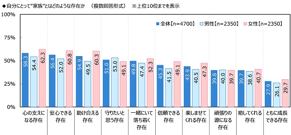 自分にとって家族とは? 1位「心の支えになる存在」2位「安心できる存在」3位「助け合える存在」